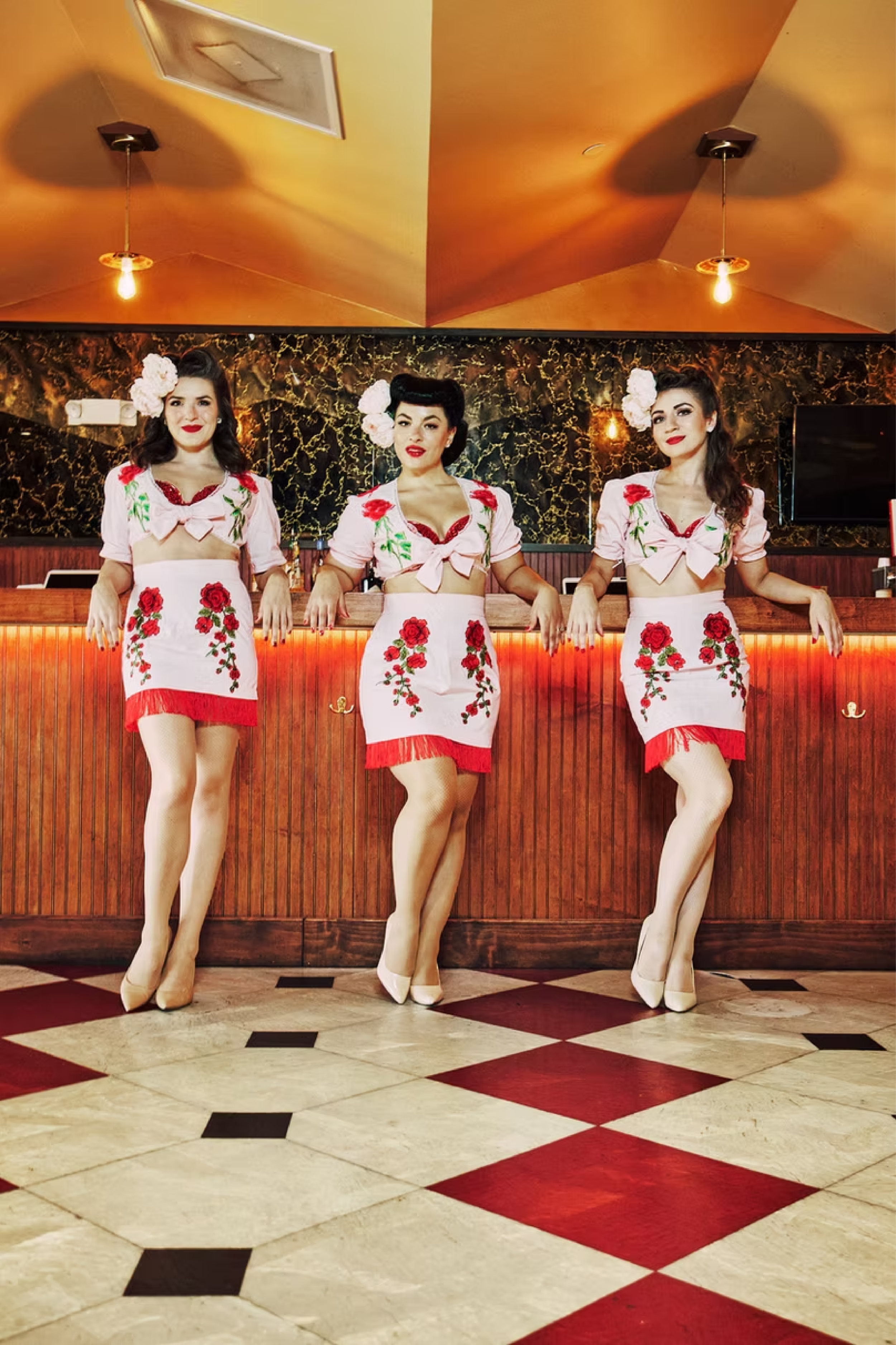 Brimming with sizzle and sass, the Nashville Satin Dollz are the newest division of the international pin up darlings. Handpicked in 2024 from Music City's community of talented artists, these southern sirens are setting stages on fire with their smooth harmonies and spunky personas.